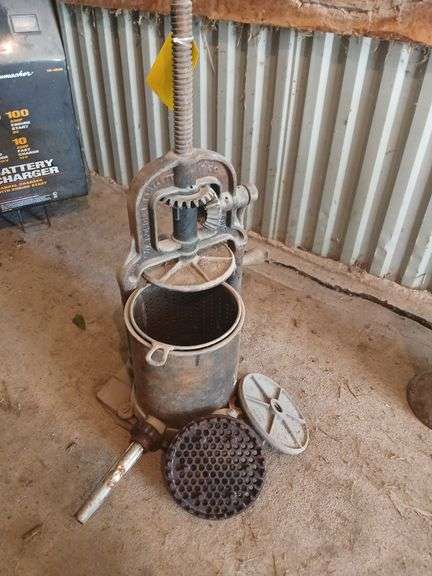 LOT 18496 - Hibbard Spencer Bartlett & Co Chicago 4 qt sausage press w/ neck, collar and plates