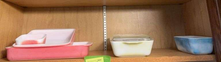 LOT 18222 - Pyrex Red 0501, 222, 232 Blue 0502 Yellow w lid 0503 All are color faded
