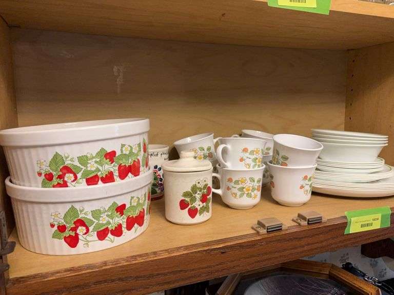 LOT 18238 - Corelle dishes and two strawberry casserole dishes