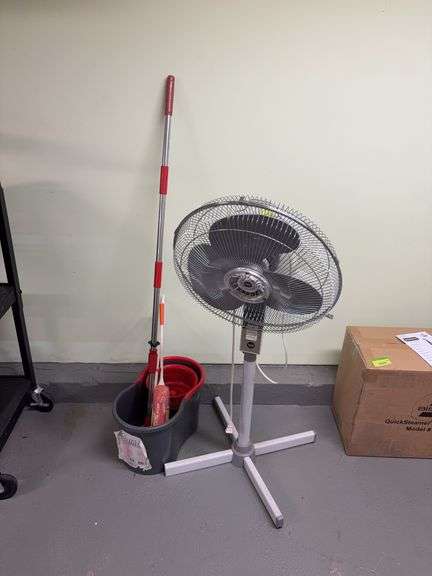 LOT 18781 - Oscillating floor fan and spin mop w/ bucket