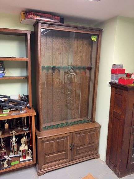 LOT 18794 - 10 gun glass door gun cabinet, w/ locking bottom cabinet