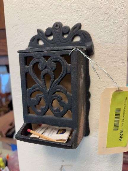LOT 18249 - Cast iron match holder and string holder