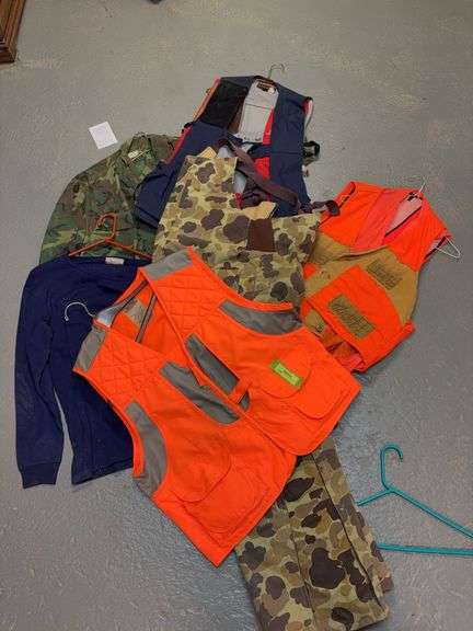 LOT 18801 - Trap vests, upland vests, camo shirts, camo insulated bibs, shirts