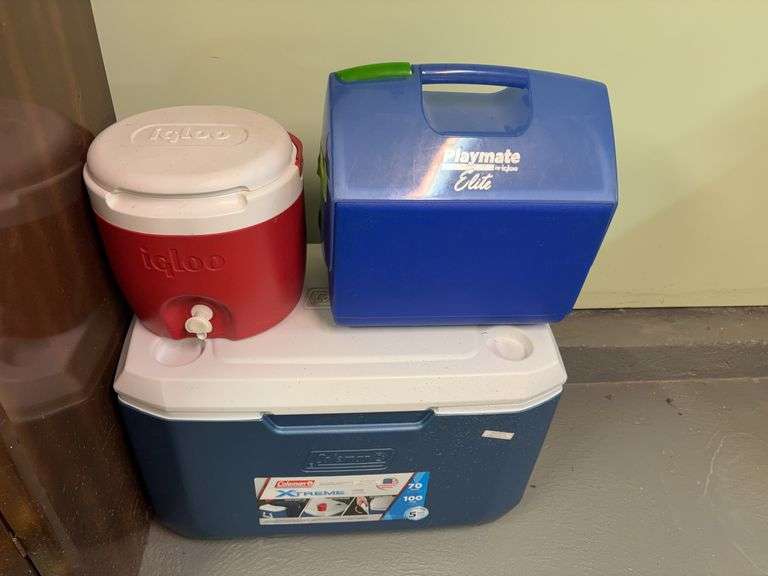 LOT 18805 - Coleman Xtreme 100 can cooler, Igloo water jug and Igloo Playmate cooler