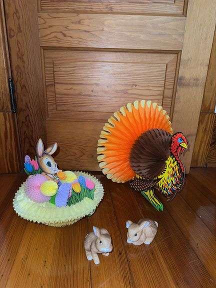 LOT 18272 - Two Beistle paper holiday centerpieces and two Homco rabbits