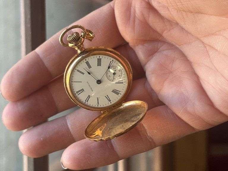 Lot 637:Waltham small gold pocket watch marked warranted 14 K to assay BWCCO number 6258823