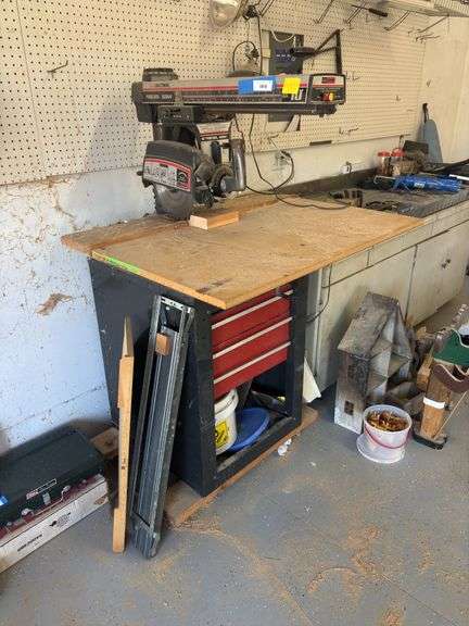 Lot 603:Large storage shelf with drawers 45 x 16 x 61