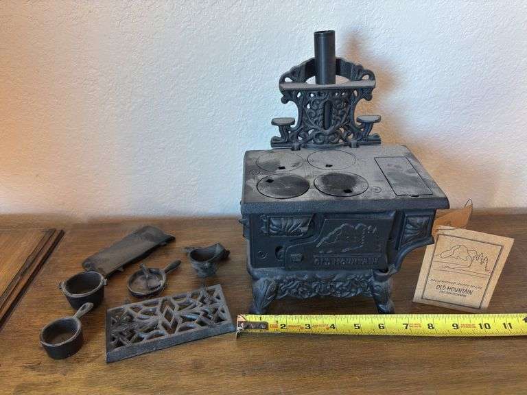 Lot 625:Cast-iron miniature Old Mountain cast-iron cook stove with lots of cute tiny accessories