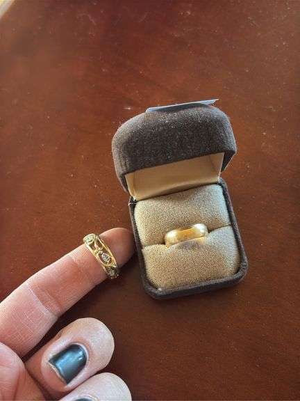 Lot 636:Gold band marked Andrew 18 K and Black Hills gold ring marked 18 KGE